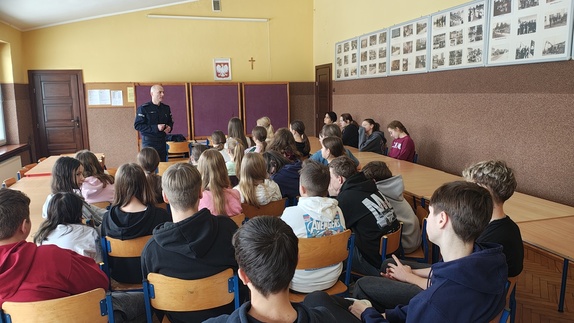 Okres ferii to czas, kiedy młodzież szkolna korzysta z uroków zimy często wyjeżdżając poza miejsce zamieszkania. Dlatego policjanci prowadzą cykl spotkań podczas, których uświadamiają młodym ludziom jakich zachowań wystrzegać się, by tegoroczny zimowy wypoczynek był bezpieczny.