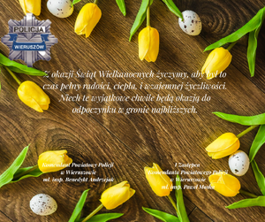 Życzenia kierownictwa Komendy Powiatowej Policji w Wieruszowie z okazji Świąt Wielkanocnych Dodano: 03.04.2026