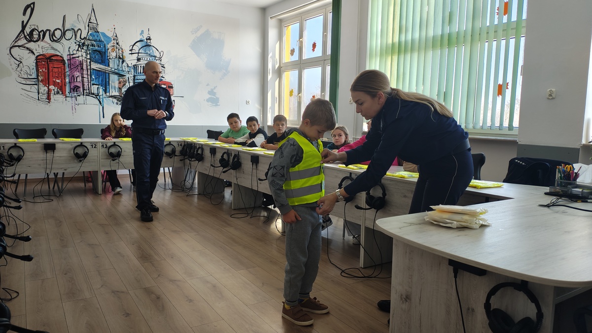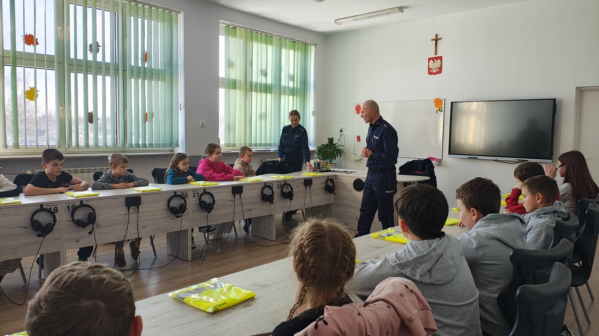 Policjanci spotkali się z uczniami Szkoły Podstawowej nr 3 w Wieruszowie, aby porozmawiać o zachowaniach, które wpływają na bezpieczeństwo podczas poruszania się po drogach. W trakcie wizyty mundurowych nie zabrakło informacji na temat stosowania przemocy rówieśniczej i hejtu. Na zakończenie spotkania wszyscy zostali wyposażeni w kamizelki odblaskowe, które znacząco poprawiają widoczność uczniów na drogach.
