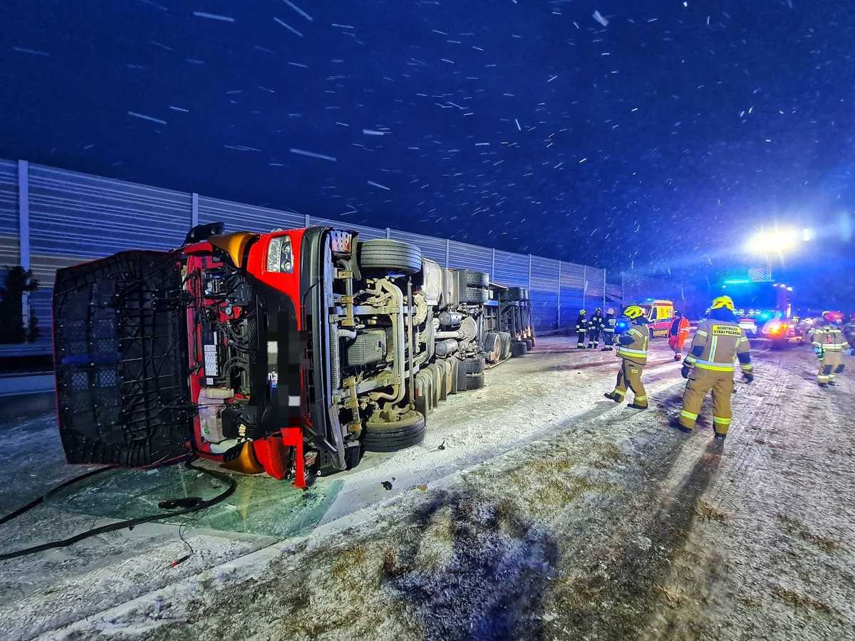 Wczoraj 16 lutego 2026 roku przed godziną 17:00 policjanci zostali skierowani na trasę S8 w kierunku Wrocławia, gdzie na 135 kilometrze drogi kierujący ciężarowym Iveco z naczepą jechał od lewej do prawej nie trzymając pasa ruchu. Podczas dojazdu patrolu wpłynęło kolejne zgłoszenie dotyczące tego samego pojazdu, który przewrócił się na bok blokując ekspresową ósemkę. Policjanci wykonując czynności na miejscu tego zdarzenia ustalili, że 56-letni obywatel Mołdawii w wyniku niedostosowania prędkości do warunków ruchu stracił panowanie nad ciężarowym Iveco z naczepą w wyniku czego doszło do przewrócenia się pojazdów na bok blokując trasę S8 w kierunku Wrocławia. Kierujący był trzeźwy, i o własnych siłach wydostał się z pojazdu, nie doznając obrażeń ciała. Na miejscu pracowali także funkcjonariusze z PSP w Wieruszowie oraz druhowie z OSP Chojny oraz OSP Walichnowy. Droga w miejscu zdarzenia do godziny 22:00 była całkowicie zablokowana. Policjanci zorganizowali objazd na węźle Złoczew kierując ruch na drogę wojewódzką 482, gdzie następnie na węźle Wieluń można było kontynuować podróż w kierunku Wrocławia.