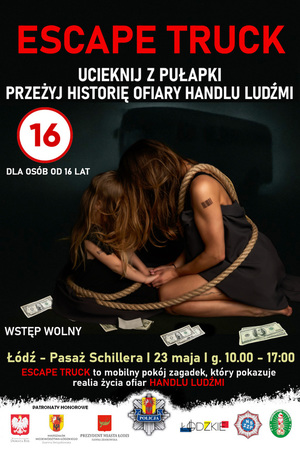 Serdecznie zapraszamy do udziału w wyjątkowym przedsięwzięciu profilaktycznym ESCAPE TRUCK, które odbędzie się 23 maja 2025 roku w Łodzi na Pasażu Schillera. To mobilny pokój zagadek stworzony po to, by uświadamiać, edukować i budować społeczną odporność na zjawisko handlu ludźmi. Wydarzenie to zamyka wiosenną edycję projektu realizowanego przez Komendę Główną Policji, policję holenderską, Ambasadę Królestwa Niderlandów w Polsce, Uniwersytet Wrocławski, Komendę Główną Straży Granicznej.